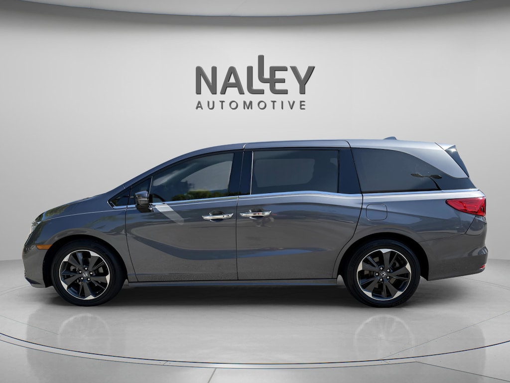 Safety is comprehensive with Honda Sensing technologies including adaptive cruise control with low-speed follow, collision mitigation braking system, lane keeping assist, road departure mitigation, blind spot information system with cross traffic monitor, and front and rear parking sensors. Additional convenience features include a hands-free power tailgate, power sliding doors, wireless phone charger, rain-sensing windshield wipers, heated steering wheel, LED headlights with auto-on/off, 19-inch unique machine-finished alloy wheels, and a multi-angle rearview camera.